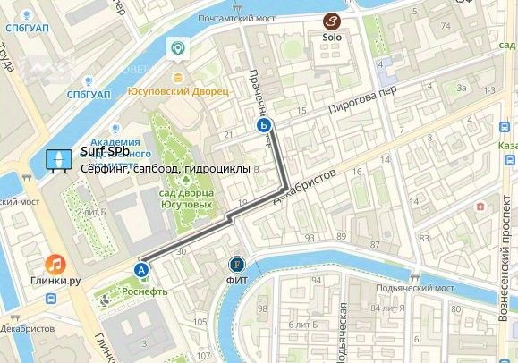 Рядом набережная реки Мойки, Юсуповский дворец, Исаакиевский собор, в пяти минутах пешком Мариинский театр.