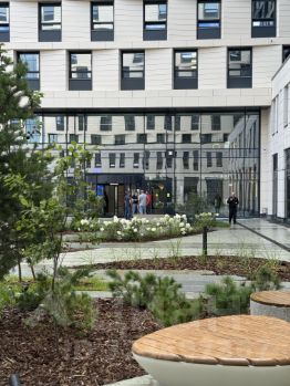-Инфраструктура много функционального комплекса включает апарт-отель, просторное лобби, зону коворкинга и офисных помещений с возможностью организации VR-переговоров, а также экспозицию молодых художников, рестораны сбалансированного питания и кафе на любой вкус, dаily-магазин здоровой еды и представительство инновационного курорта превентивной медицины Первая Линия.