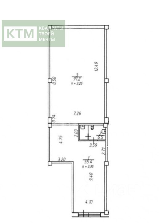 - Высота потолков - 3,35 м.