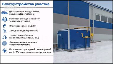 Отопление - природный газ (наружный котёл ТГУ - тепловая газовая установка)