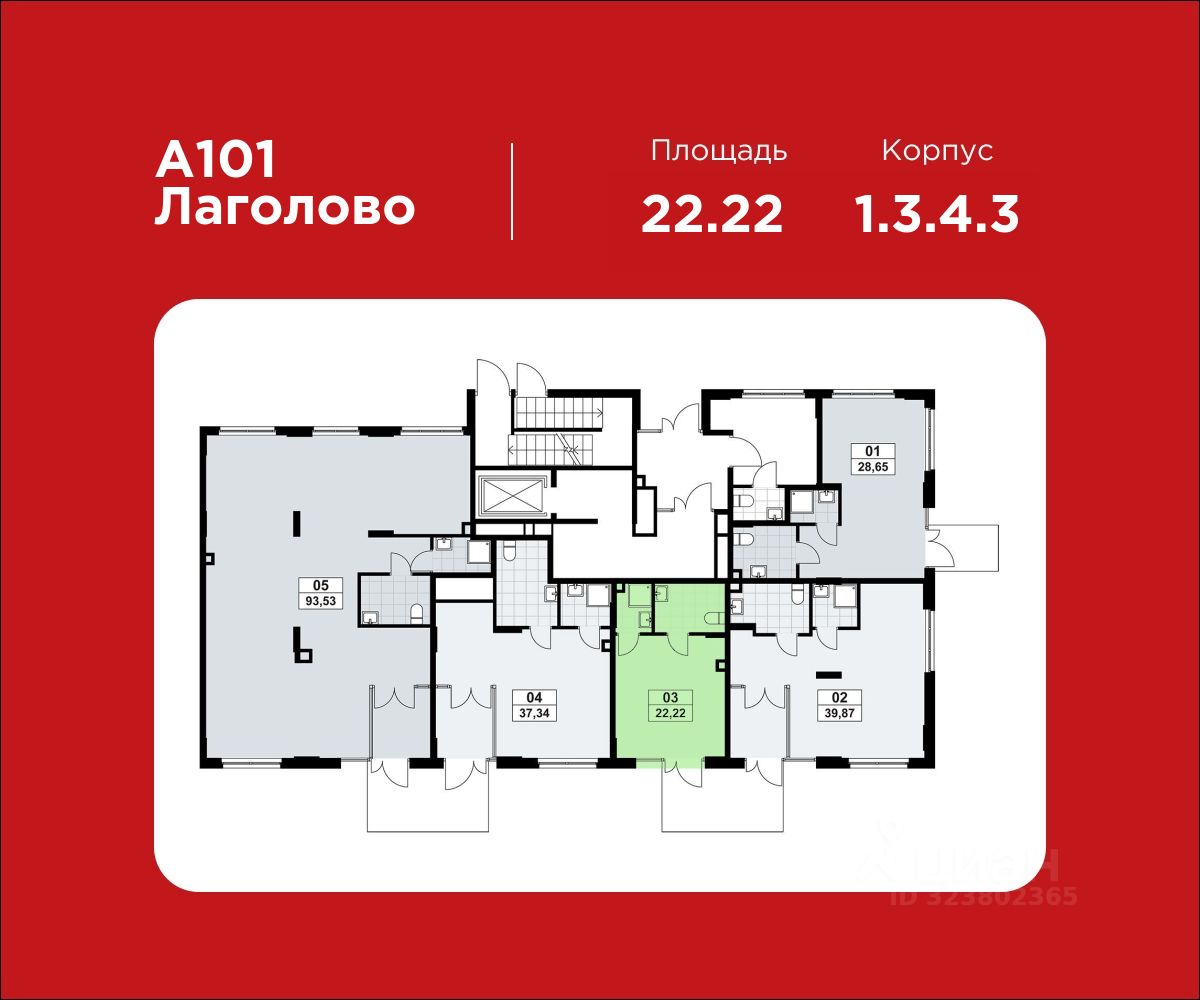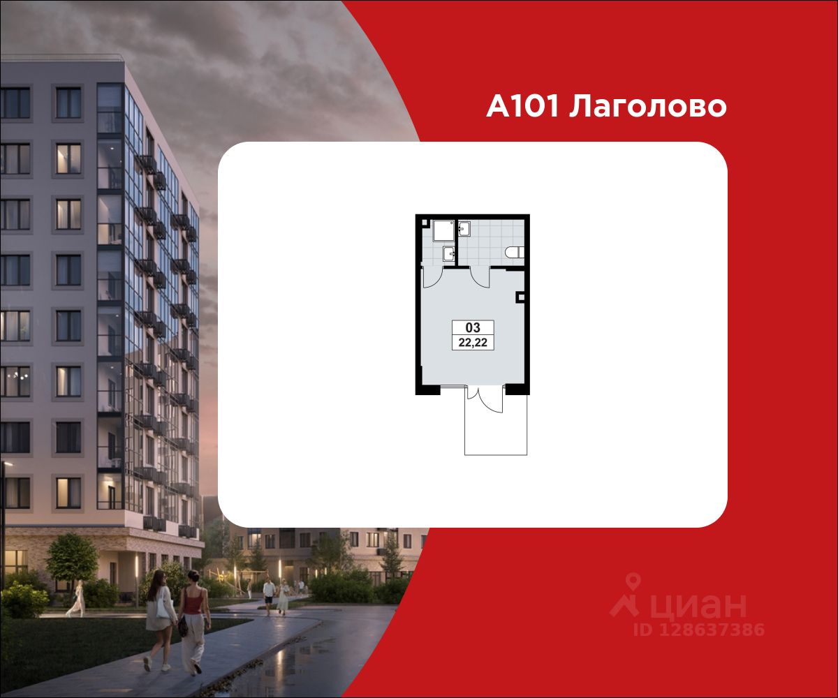 Продажа торгового помещения 22.22 м² в ЖК "А101 Лаголово" от застройщика. Опция "готовый арендный бизнес". Рассрочка на 12 мес. В 2026 году сдается первая очередь на 5.000 жителей. Дом 1.3.4.3, будет заселен в 2028 году.
