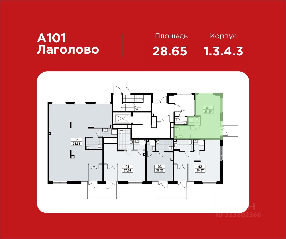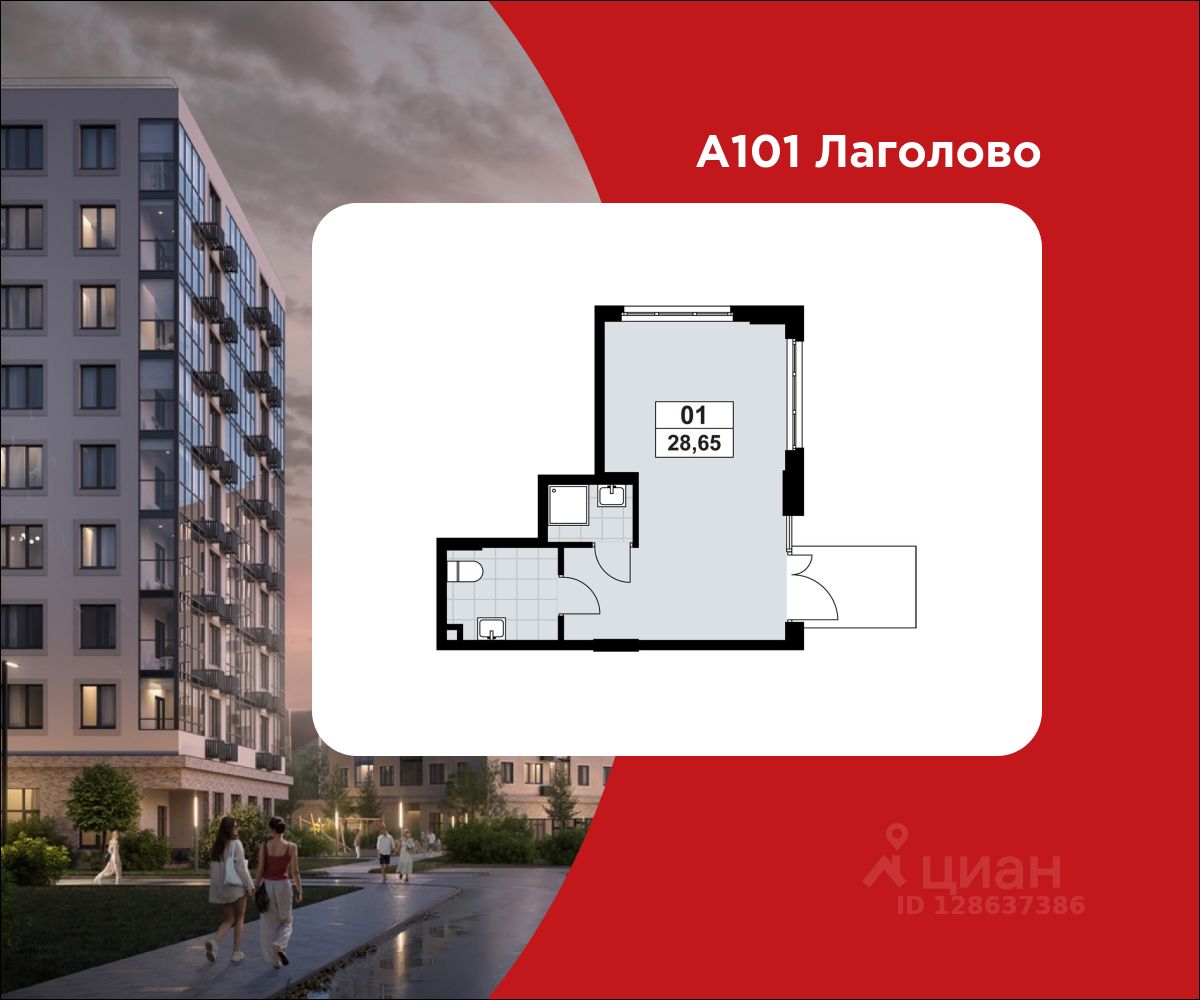 Продажа торгового помещения 28.65 м² в ЖК "А101 Лаголово" от застройщика. Опция "готовый арендный бизнес". Рассрочка на 12 мес. В 2026 году сдается первая очередь на 5.000 жителей. Дом 1.3.4.3, будет заселен в 2028 году.