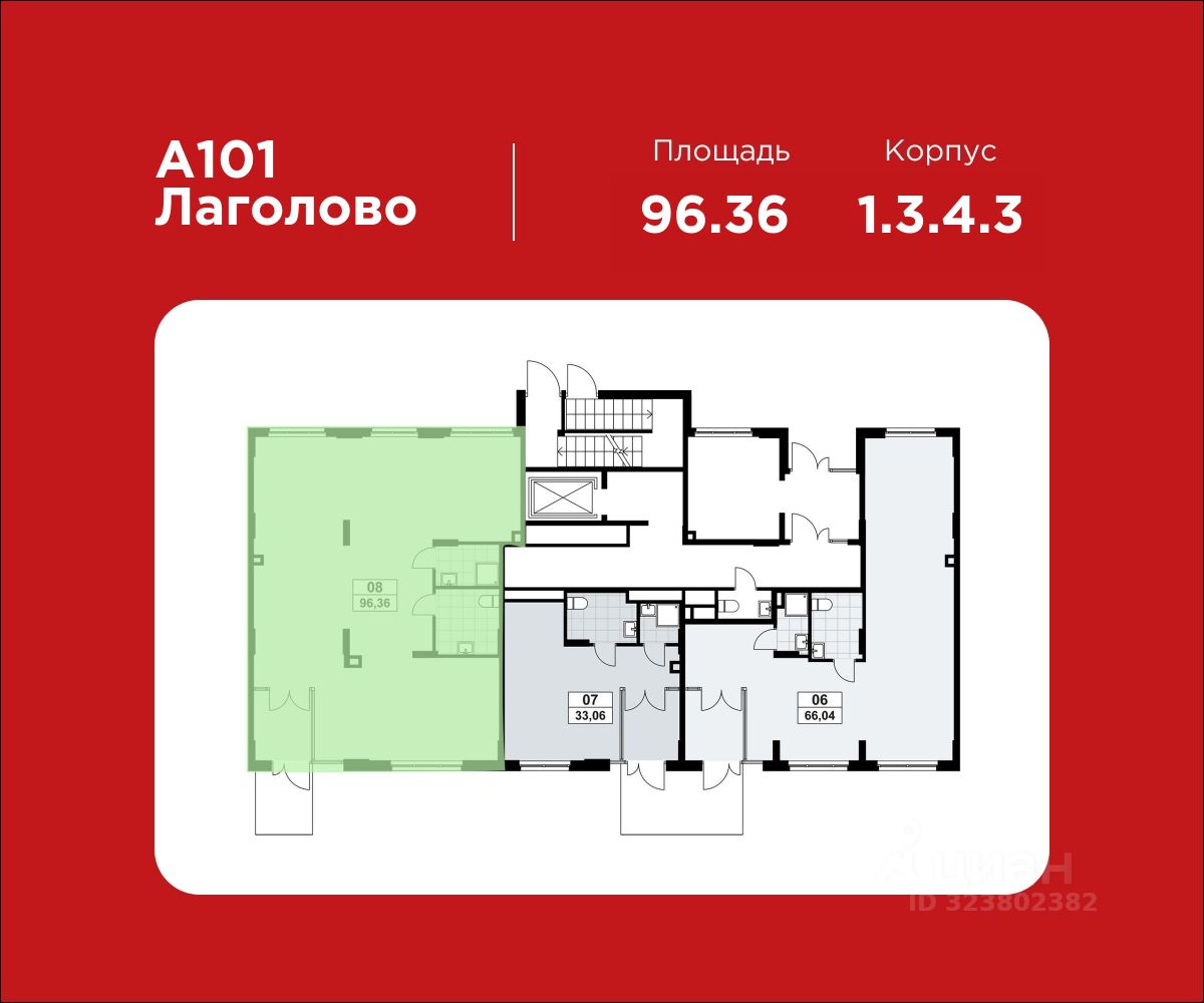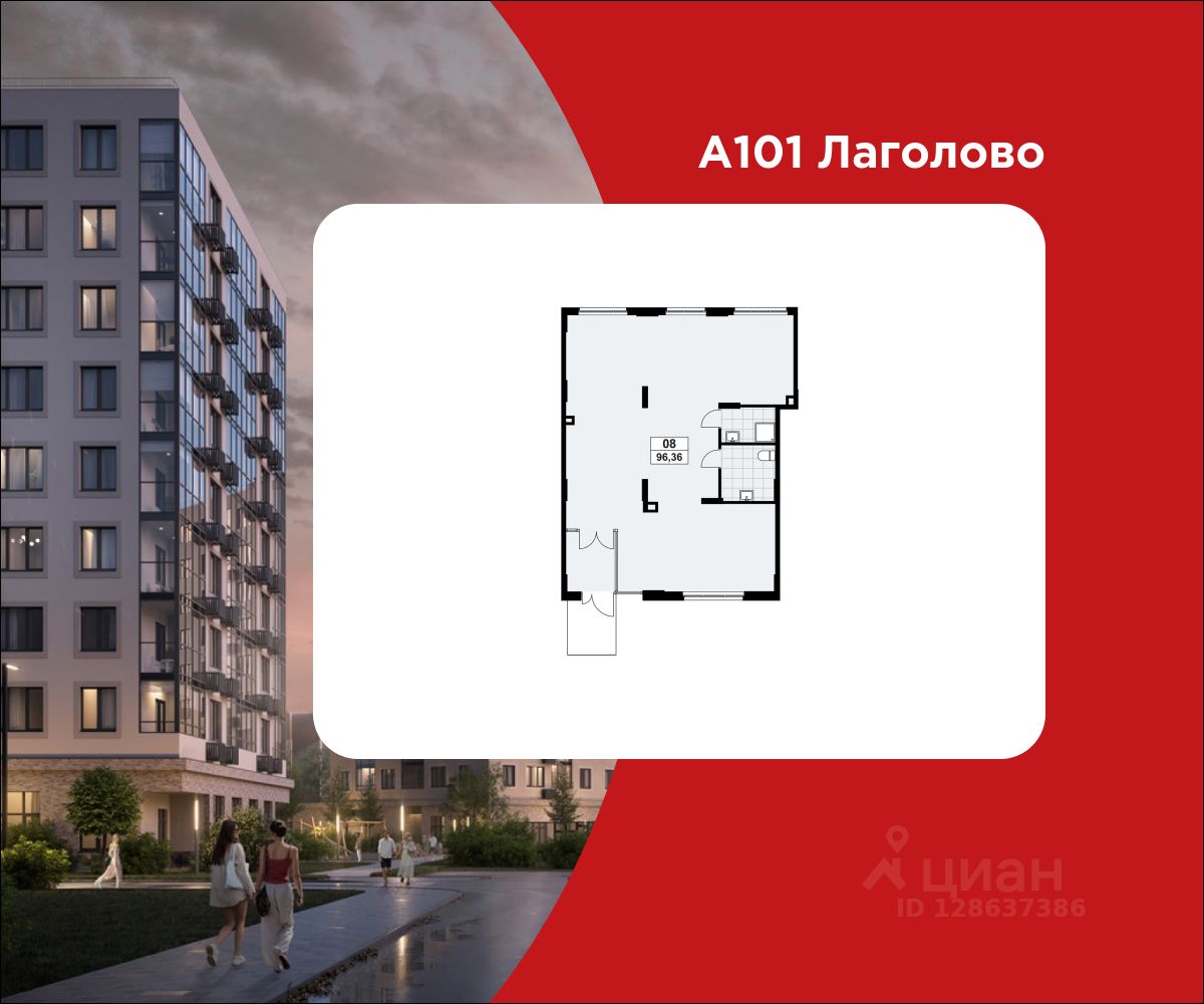Продажа торгового помещения 96.36 м² в ЖК "А101 Лаголово" от застройщика. Опция "готовый арендный бизнес". Рассрочка на 12 мес. В 2026 году сдается первая очередь на 5.000 жителей. Дом 1.3.4.3, будет заселен в 2028 году.
