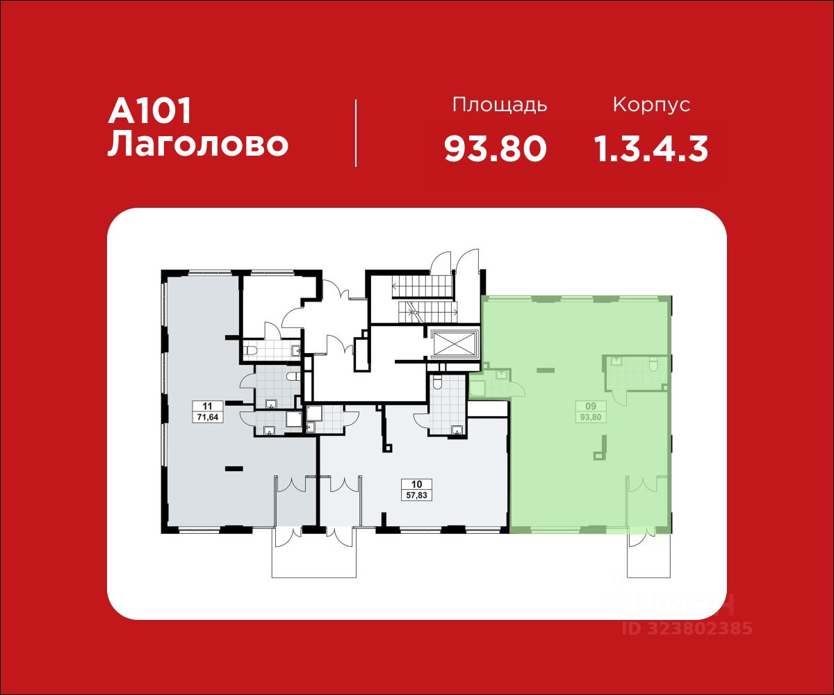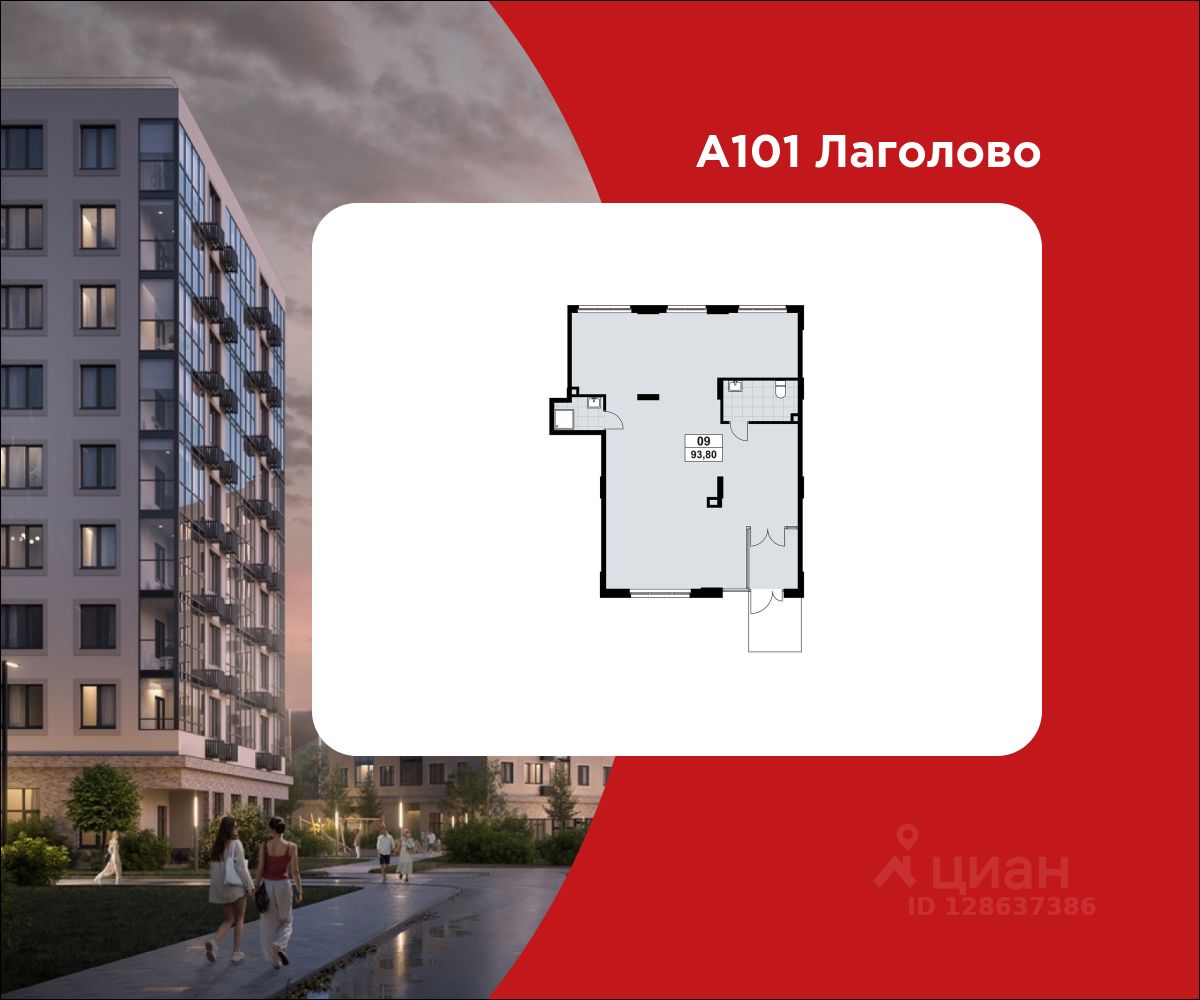 Продажа торгового помещения 93.80 м² в ЖК "А101 Лаголово" от застройщика. Опция "готовый арендный бизнес". Рассрочка на 12 мес. В 2026 году сдается первая очередь на 5.000 жителей. Дом 1.3.4.3, будет заселен в 2028 году.