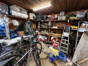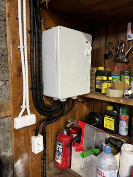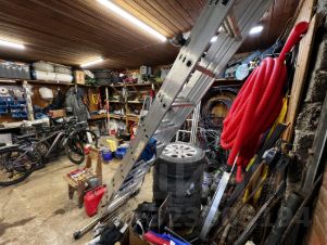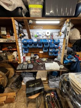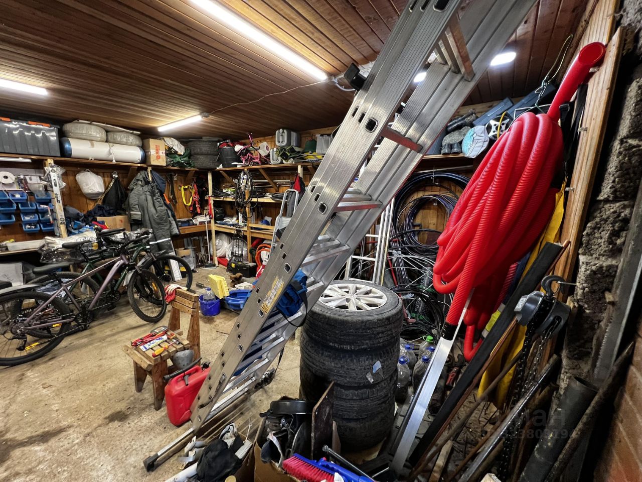 Обшит вагонкой, удобные полки. Верстак для работ. Хорошая электрика и освещение.