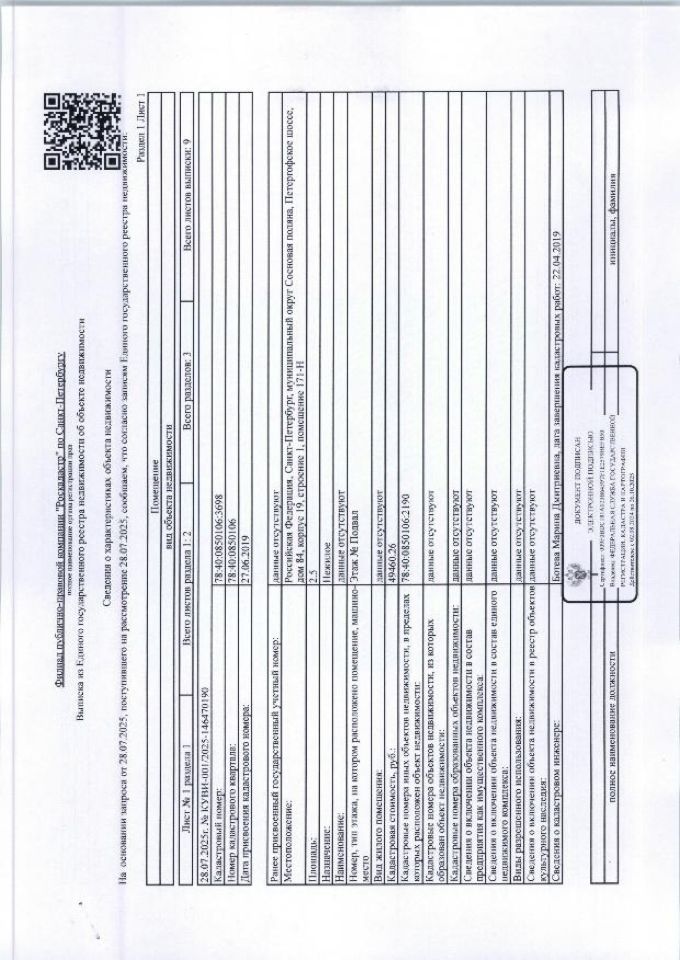 Нежилое помещение 171-Н, расположенные по адресу: Санкт-Петербург, Сосновая Поляна, Петергофское шоссе, д. 84, корп. 19, стр. 1общ. пл. 2.5 кв.м. кад 78:40:0850106:3698