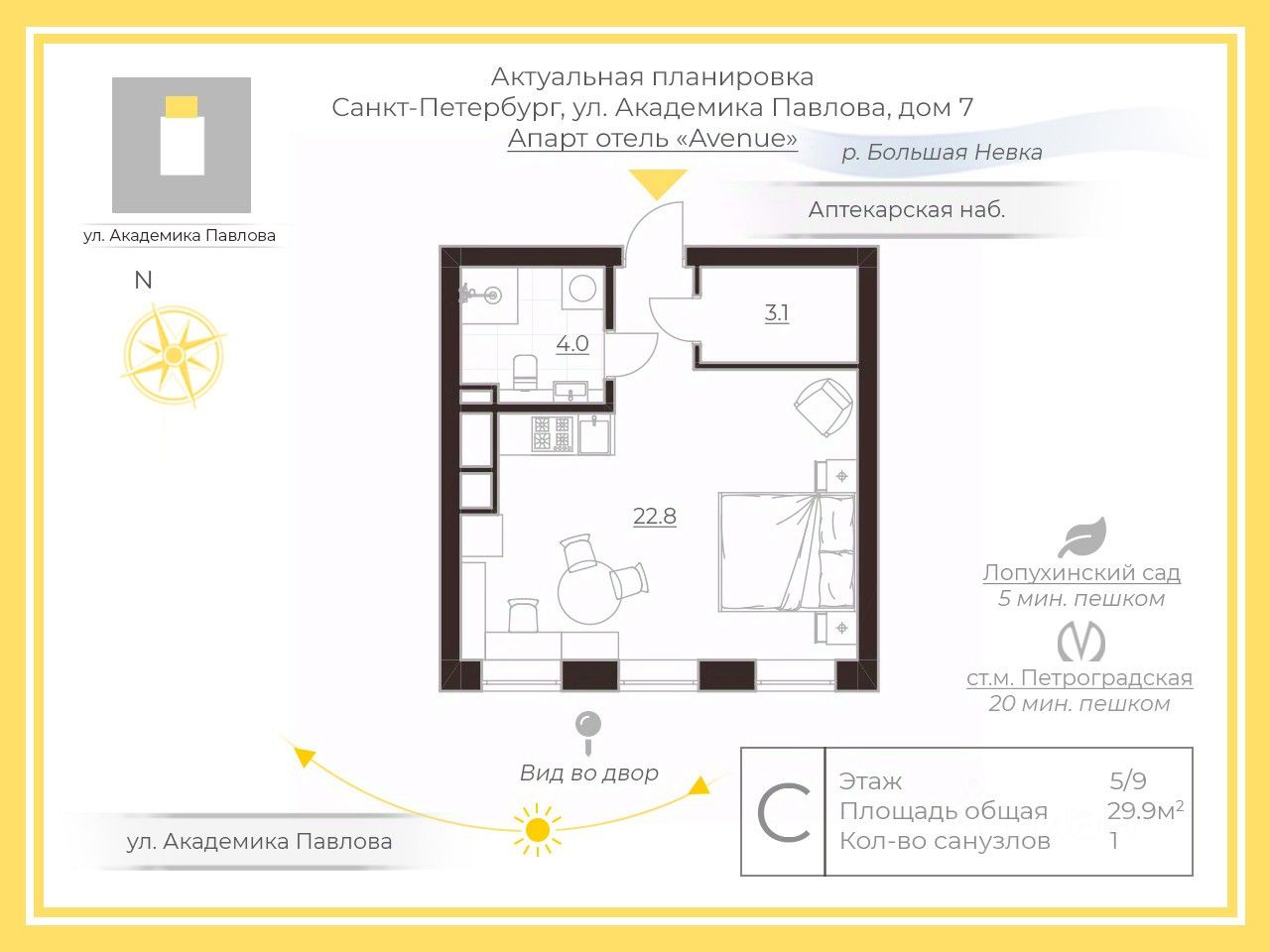 Арт. 99000969 Продается номер-студия в апарт-отеле бизнес-класса Avenue на Аптекарском острове!