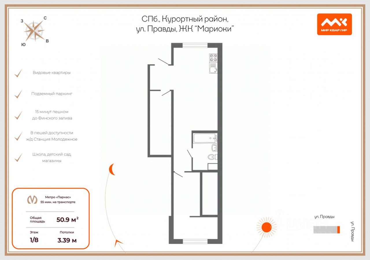 Транспортная доступность: В пешей доступности ж/д станция "Молодежная". До Санкт-Петербурга можно доехать на автобусе или автомобиле по Приморскому шоссе примерно за 40-60 минут.