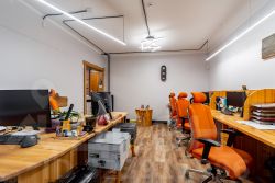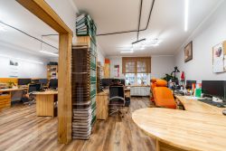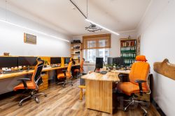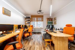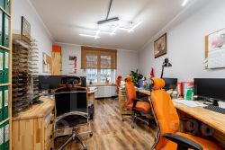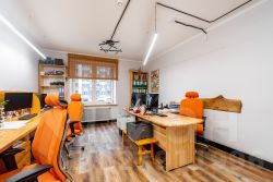 Дополнительный кабинет для руководителя оснащен окнами и достаточным количеством естественного света, обеспечивающим удобное рабочее место.