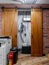 Электрозамок марки Abloy на входе и современный видеодомофон обеспечивают надежную защиту офиса и удобство контроля доступа.