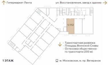 Описание помещения: Вход в помещение рядом с центральным входом в комплекс, а выход напротив остановки и транспортной развязки.