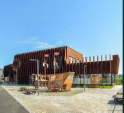 7 входов в помещение. Электрическая мощность 366 кВт. Площадь ФОК 1381,6м2, включает в себя бейби-клуб - 300,5м2. Бонусом идет технический этаж, эксплуатируемая кровля - 1090,17м2.