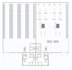 Описание помещения: Помещение из 12 секций - 849-1031 м2, с двухэтажным офисным блоком 148м2 в каждом.