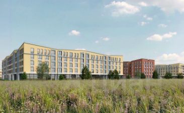 Малоэтажный квартал, состоящий из жилых домов высотой 5 этажей. Фасады выполнены в теплых оттенках бежевого и терракотового спектра. Парапеты домов имеют уклоны, фасады украшают декоративные пояса, а под окнами располагается рустовка.