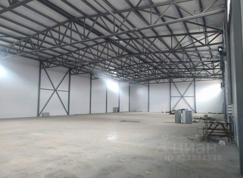 Помещение с высотой потолков до 9,6 м, высота до ферм - 7 м.