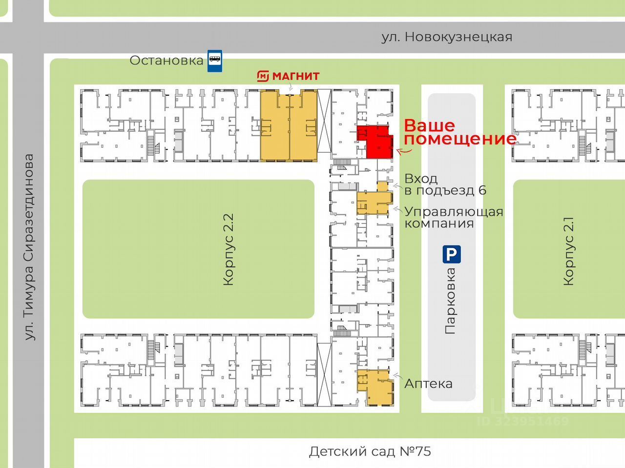 Всё это даёт большой трафик местных жильцов, соответственно, и прибыль будущему собственнику этого помещения.