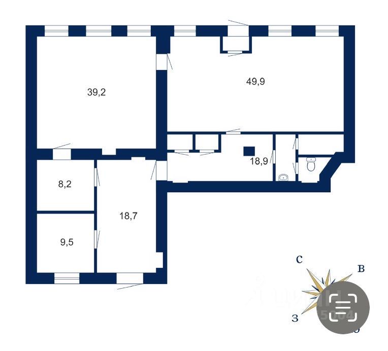 возможность зонирования (раздела примерно поровну) помещения на 2,