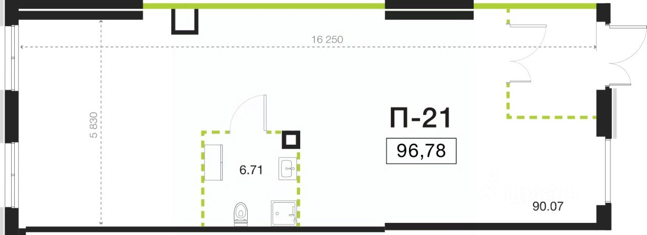 Помещение свободного назначения на 1 этаже, общая площадь 96.78 кв.м., высота потолков 4.05 м.Мощность подведенной линии электроснабжения 20 кВт. Стоимость помещения 41,373,450 руб., цена за кв.м 427,500 руб.