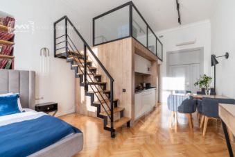 Весь проект продуман до мелочей. 4 номера с видом на церковь Анненкирхе. Обуродованы вторым уровнем, где расположено дополнительно спальное место.