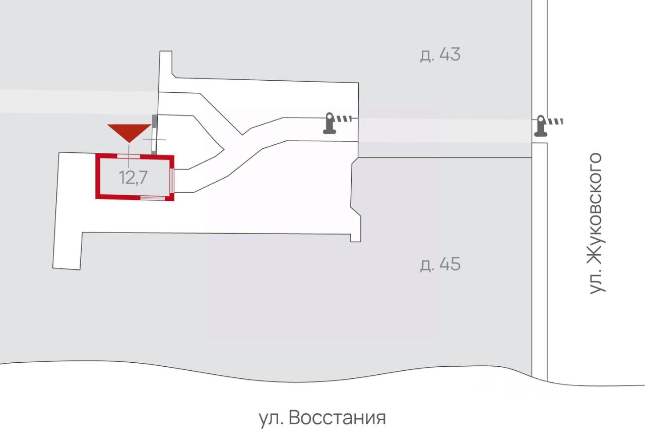 Продается земельный участок с нежилым зданием в Центральном районе Санкт-Петербурга. Окружение объекта составляет преимущественно жилая застройка. В ближайшем окружении располагаются школы, детские сады, магазины, кафе, рестораны, аптеки. Плотность застройки высокая. Парковка на улице и внутриквартальных проездах (платная). Здание находится на внутридворовой территории. Транспортная доступность отличная. Интенсивность пешеходных потоков высокая. Ближайшая станция метро "Площадь Восстания" расположена на расстоянии 600 м. Здание находится в неудовлетворительном состоянии. Площадь участка: 21 кв. м Категория земель: земли населенных пунктов Разрешенное использование: предоставление коммунальных услуг Зонирование по ПЗЗ: Т3ЖД3 Многофункциональная зона среднеэтажных многоэтажных многоквартирных жилых домов, объектов общественно-деловой застройки, расположенных на территории исторически сложившихся районов Санкт-Петербурга (за исключением исторической застройки пригородов), с включением объектов инженерной инфраструктуры Площадь здания: 12, 7 кв. м Этажность: 1 Год постройки: 1916 Окна: есть Высота потолка: 2, 75 м Коммуникации: Визуально выявлены элементы электроснабжения. Требуется заключение договоров с балансодержателями сетей! Возможное использование: склад Объект реализуется с торгов по приватизации по поручению Комитета по управлению городским имуществом Правительства Санкт-Петербурга. Торги проводятся на электронной площадке Lot-Online. Просмотр осуществляется в период приема заявок на участие в торгах и только в рабочее время. Заявку на организацию осмотра необходимо подавать заранее.