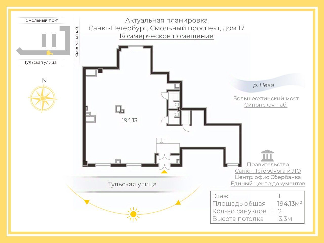 Предлагается к продаже коммерческое помещение на Смольном проспекте, в непосредственной близости от Центрального офиса Сбербанка, Невской ратуши, Красных текстильщиков, правительства Санкт-Петербурга и Ленинградской области.