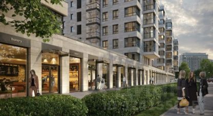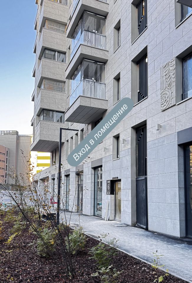 Расположение на променаде между жилыми корпусами и большим бизнес центром , пешеходный трафик. Рядом въезд в паркинг, отличная видимость помещения. Два отдельных входа, витринные окна на улицу и на территорию ЖК.
