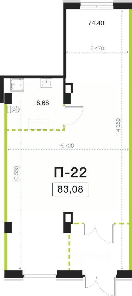 Помещение свободного назначения на 1 этаже, общая площадь 83.08 кв.м., высота потолков 3.72 м.Мощность подведенной линии электроснабжения 15 кВт. Стоимость помещения 37,884,480 руб., цена за кв.м 456,000 руб.