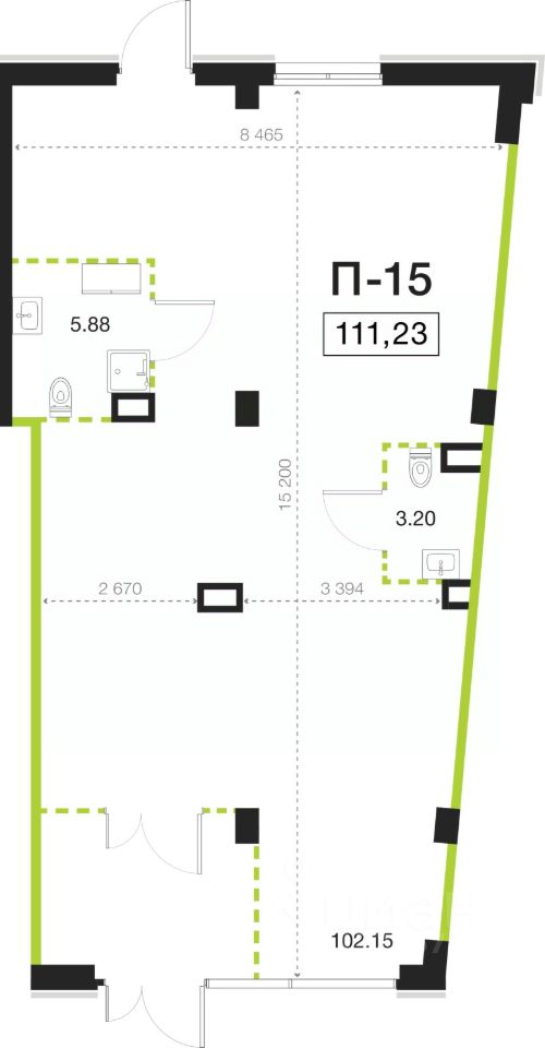Помещение свободного назначения на 1 этаже, общая площадь 111.23 кв.м., высота потолков 4.05 м.Мощность подведенной линии электроснабжения 30 кВт. Стоимость помещения 47,709,328 руб., цена за кв.м 428,925 руб.