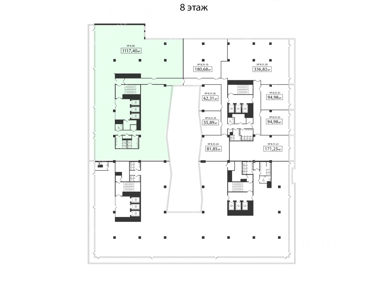 - Размер типового этажа: 3200;