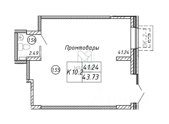 Помещение имеет правильную квадратную форму без колонн и вынесенным за периметр квадрата санузлом,