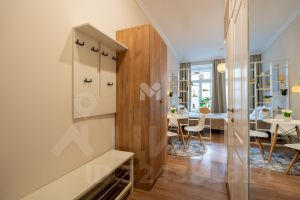Высокий первый этаж, окна в тихий двор, парадная после ремонта.