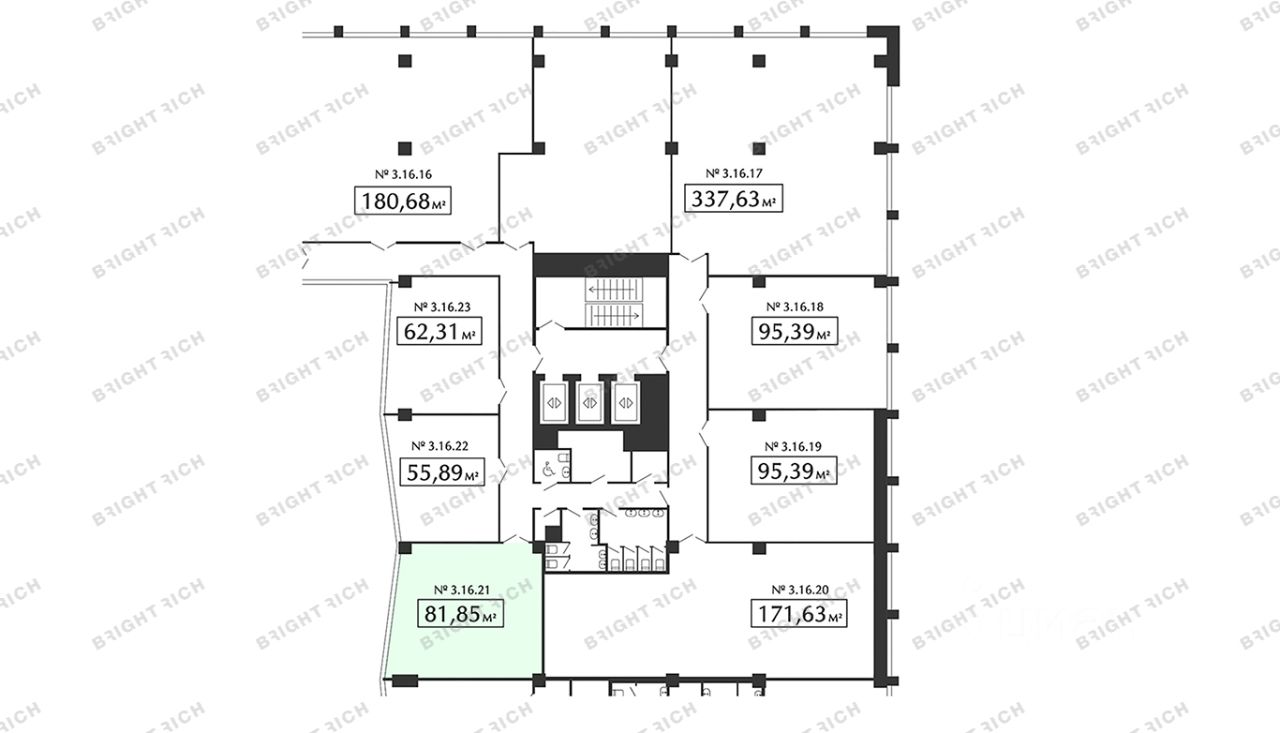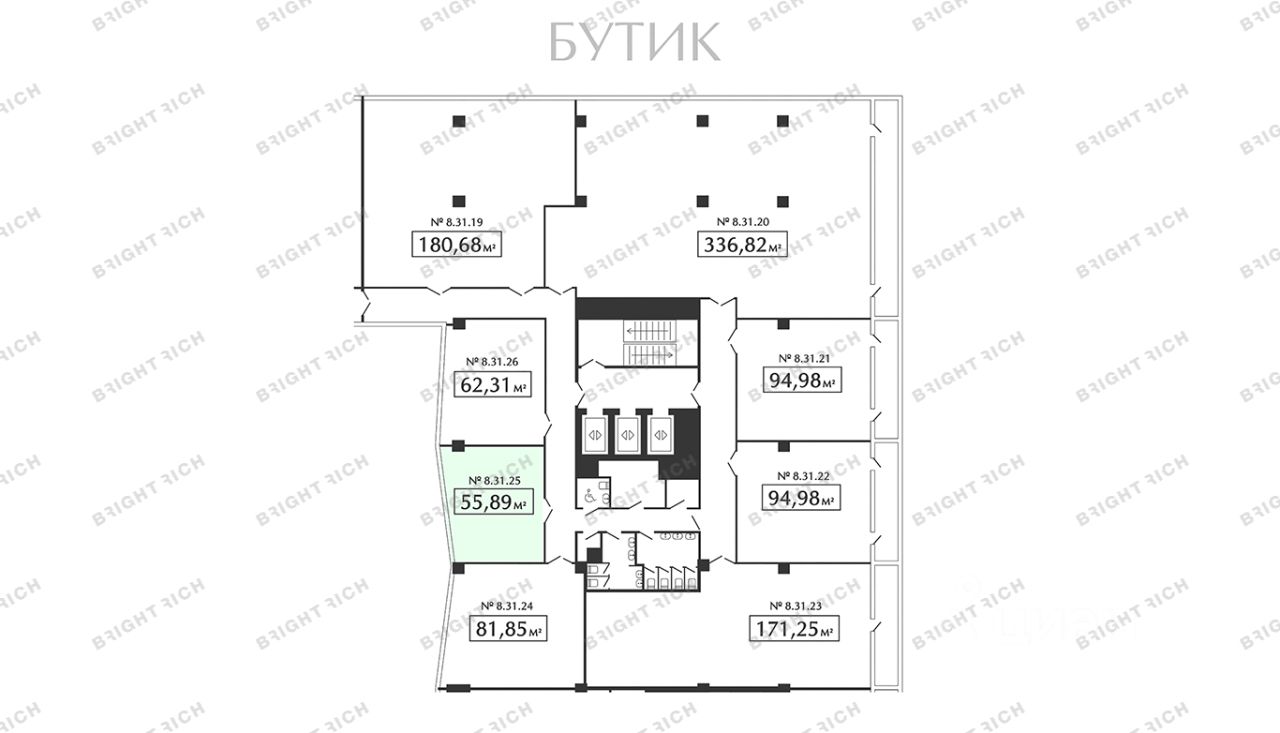 • Фрагмент Бутик — от 55,9 до 337,6 м². Автономные компактные офисы с современной инфраструктурой, видами на город или в атриум.
