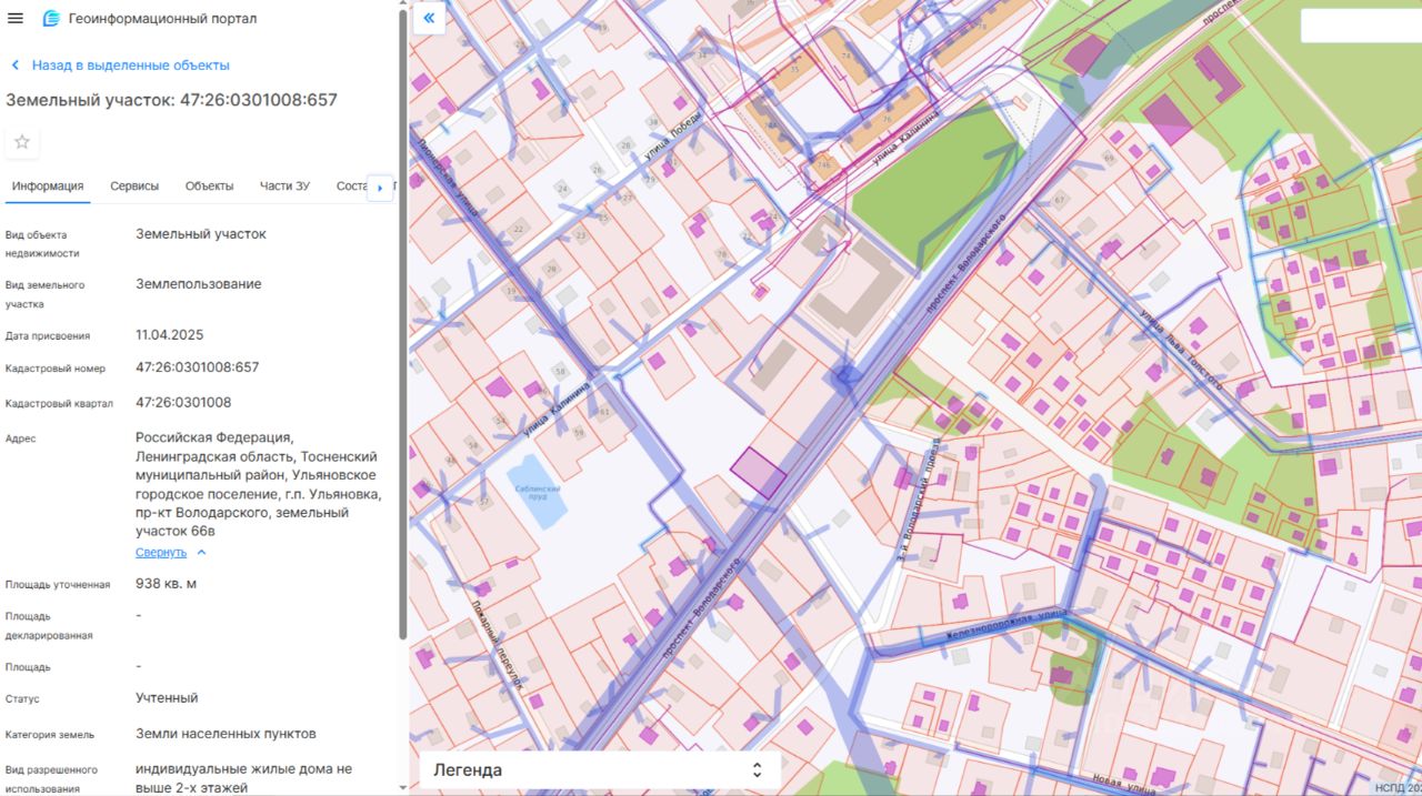 земельный участок для индивидуального жилищного строительства площадью 938 кв.м