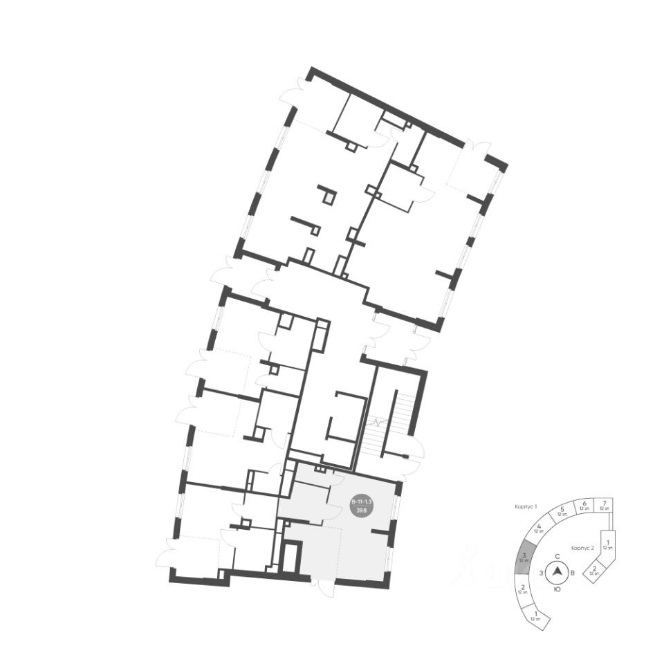 Продается помещение свободного назначения 11, по адресу Ленинградская область, Всеволожский муниципальный район, Муринское городское поселение, город Мурино, корпус Ягодное Река Парк, 1 очередь, участок 1.10, корпус 1 - встроенные помещения в Ягодное Река Парк на 1 этаже, с площадью 39.8 м2.