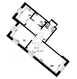 Площадь74,5 м²