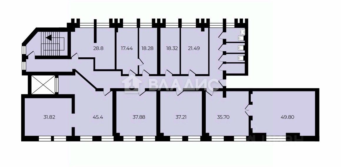 Помещение коридорного типа с кабинетами с двух сторон - данная планировка имеет высокую ликвидность для арендного и инвестиционного бизнеса. Вы сможете его использовать как для большой организации, так и сдавать отдельно по кабинетам.