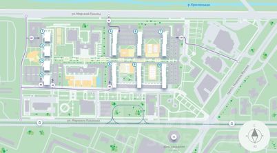 Пешеходный прогулочный бульвар внутри жилого комплекса. Близость к крупным жилым массивам гарантирует постоянный приток потенциальных клиентов, а удобная транспортная доступность делает локацию привлекательной для посетителей из разных районов города. Наличие парковочных мест решает проблему с размещением автомобилей, обеспечивая комфорт для клиентов и сотрудников.