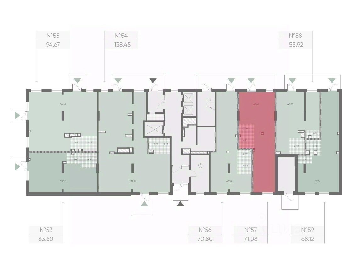 Общая площадь: 71.08 кв. м