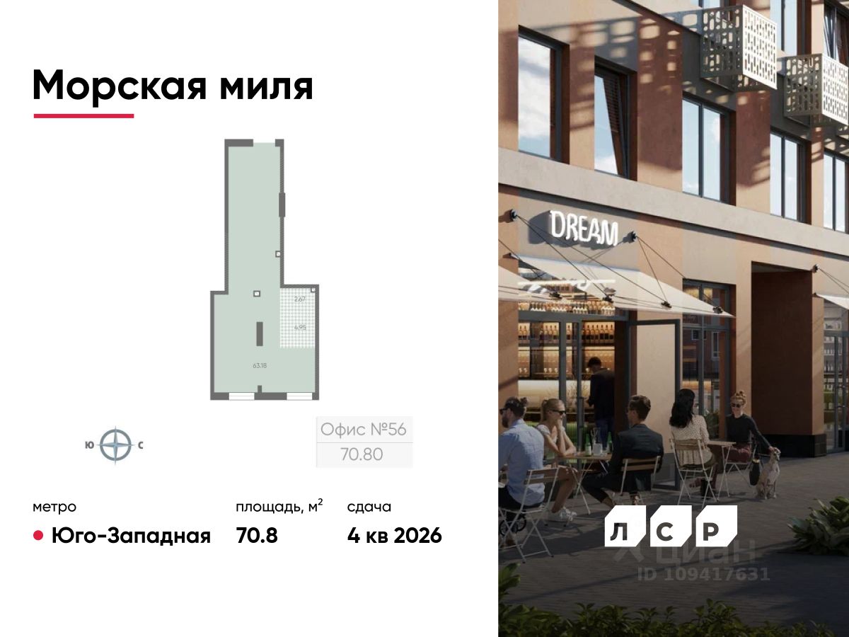 Продается помещение свободного назначения 70.80 кв. м в жилом комплексе комфорт-класса "Морская миля" в Красносельском районе. В шаговой доступности от станции метро "Юго-Западная"