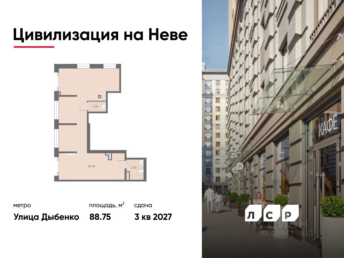 Продается помещение свободного назначения 88.75 кв. м в жилом комплексе бизнес-класса "Цивилизация на Неве" в Невском районе.