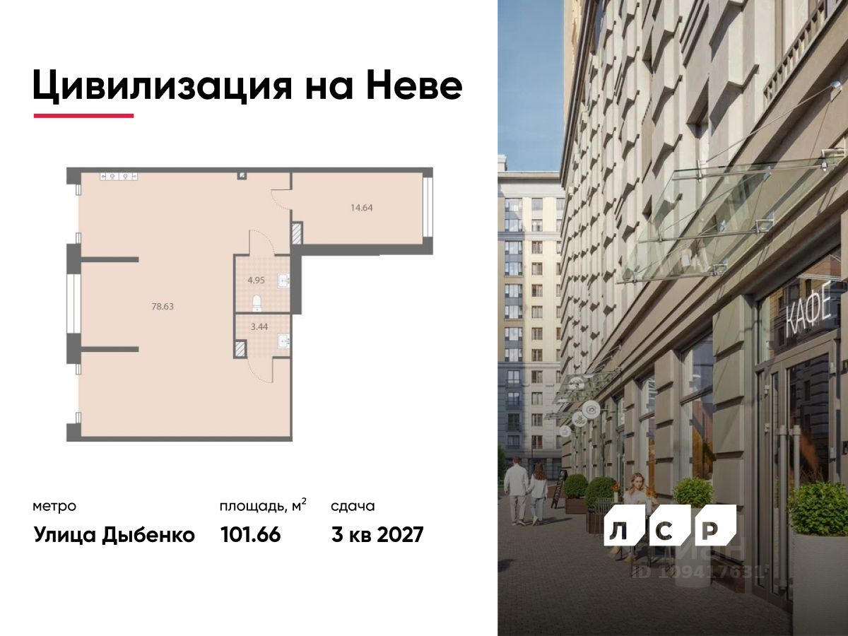 Продается помещение свободного назначения 101.66 кв. м в жилом комплексе бизнес-класса "Цивилизация на Неве" в Невском районе.
