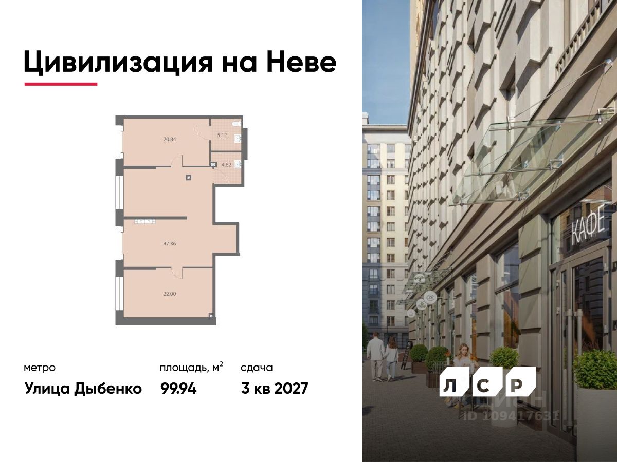 Продается помещение свободного назначения 99.94 кв. м в жилом комплексе бизнес-класса "Цивилизация на Неве" в Невском районе.