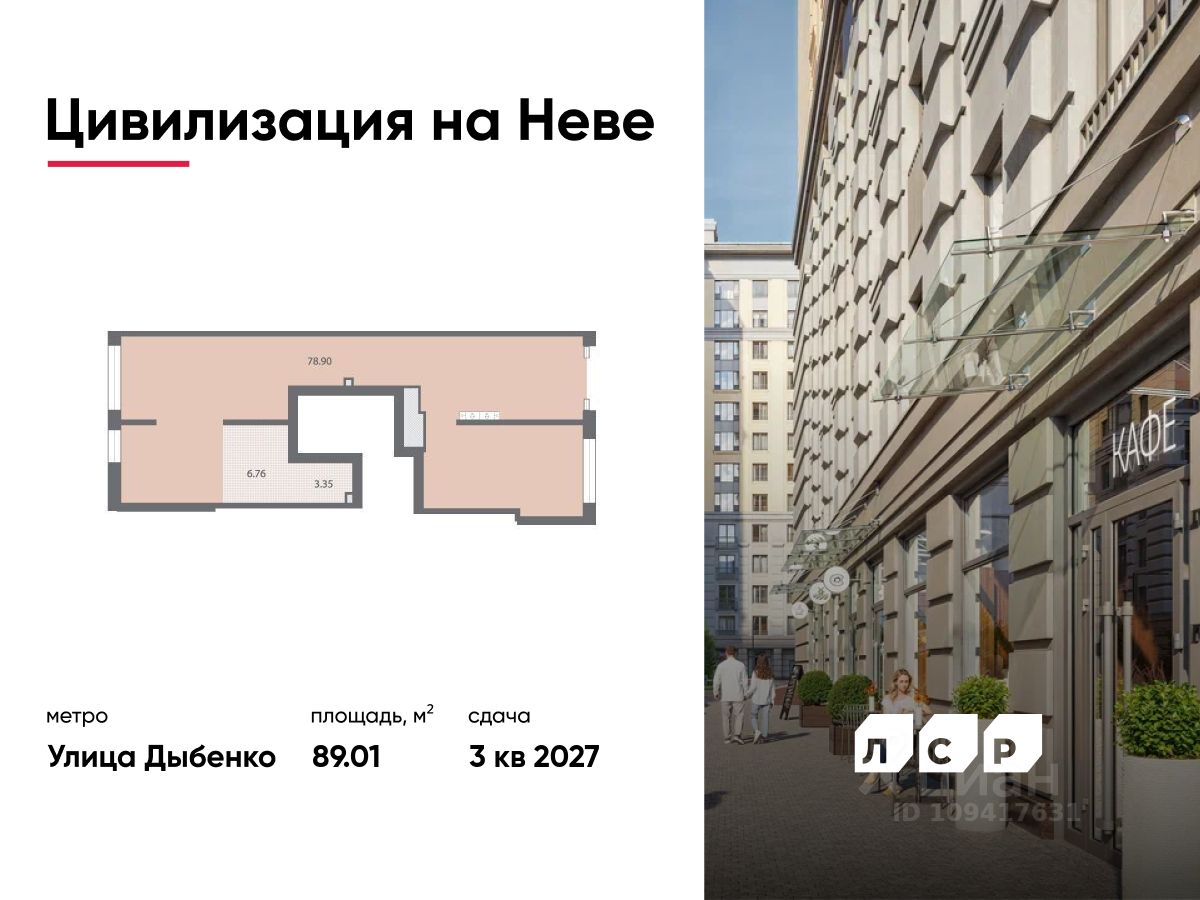 Продается помещение свободного назначения 89.01 кв. м в жилом комплексе бизнес-класса "Цивилизация на Неве" в Невском районе.