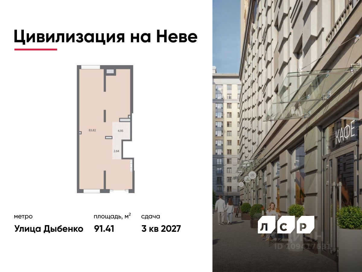 Продается помещение свободного назначения 91.41 кв. м в жилом комплексе бизнес-класса "Цивилизация на Неве" в Невском районе.