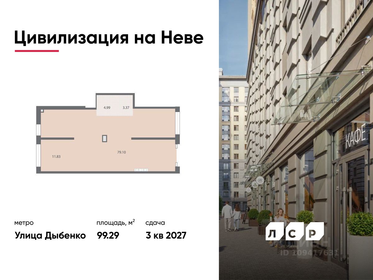 Продается помещение свободного назначения 99.29 кв. м в жилом комплексе бизнес-класса "Цивилизация на Неве" в Невском районе.