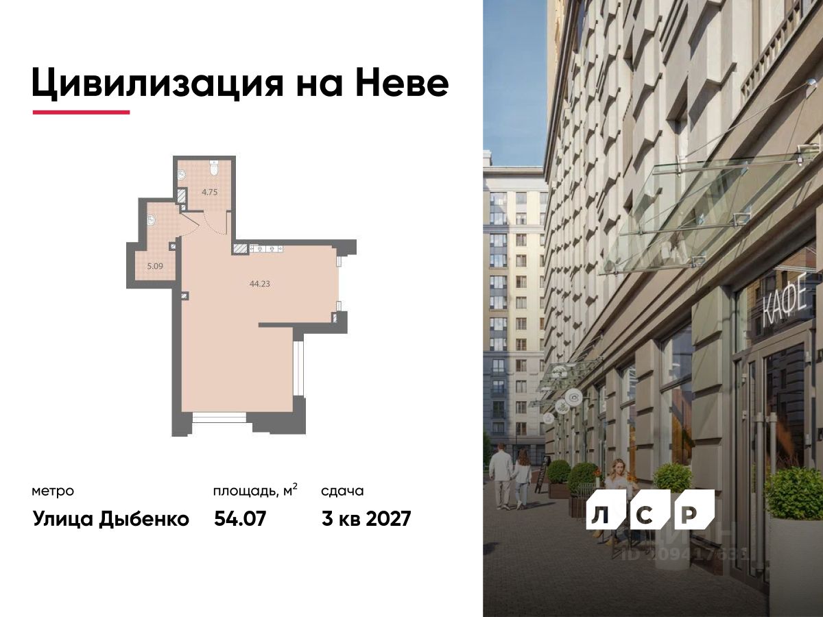 Продается помещение свободного назначения 54.07 кв. м в жилом комплексе бизнес-класса "Цивилизация на Неве" в Невском районе.