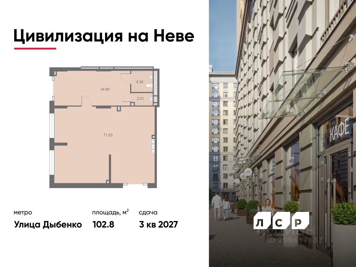 Продается помещение свободного назначения 102.80 кв. м в жилом комплексе бизнес-класса "Цивилизация на Неве" в Невском районе.