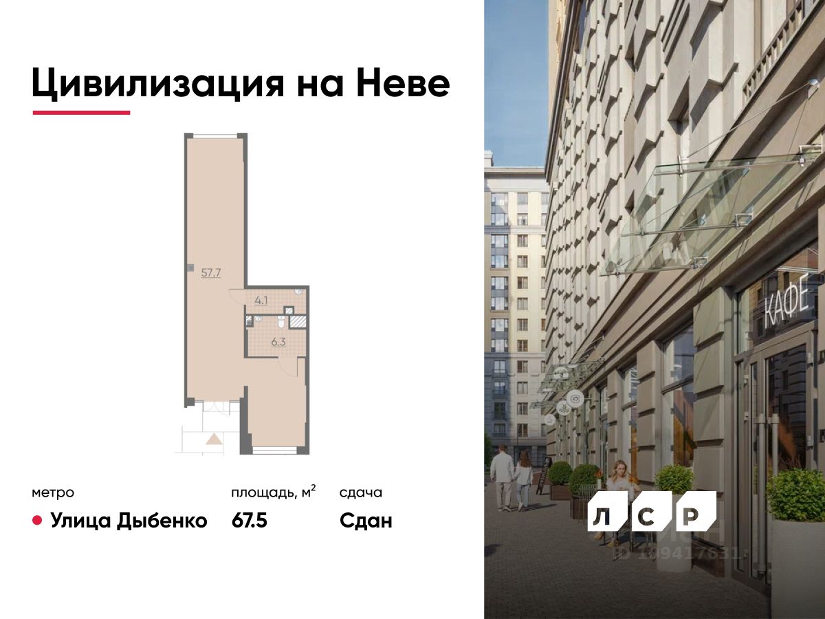 Продается помещение свободного назначения 67.50 кв. м в жилом комплексе бизнес-класса "Цивилизация на Неве" в Невском районе.