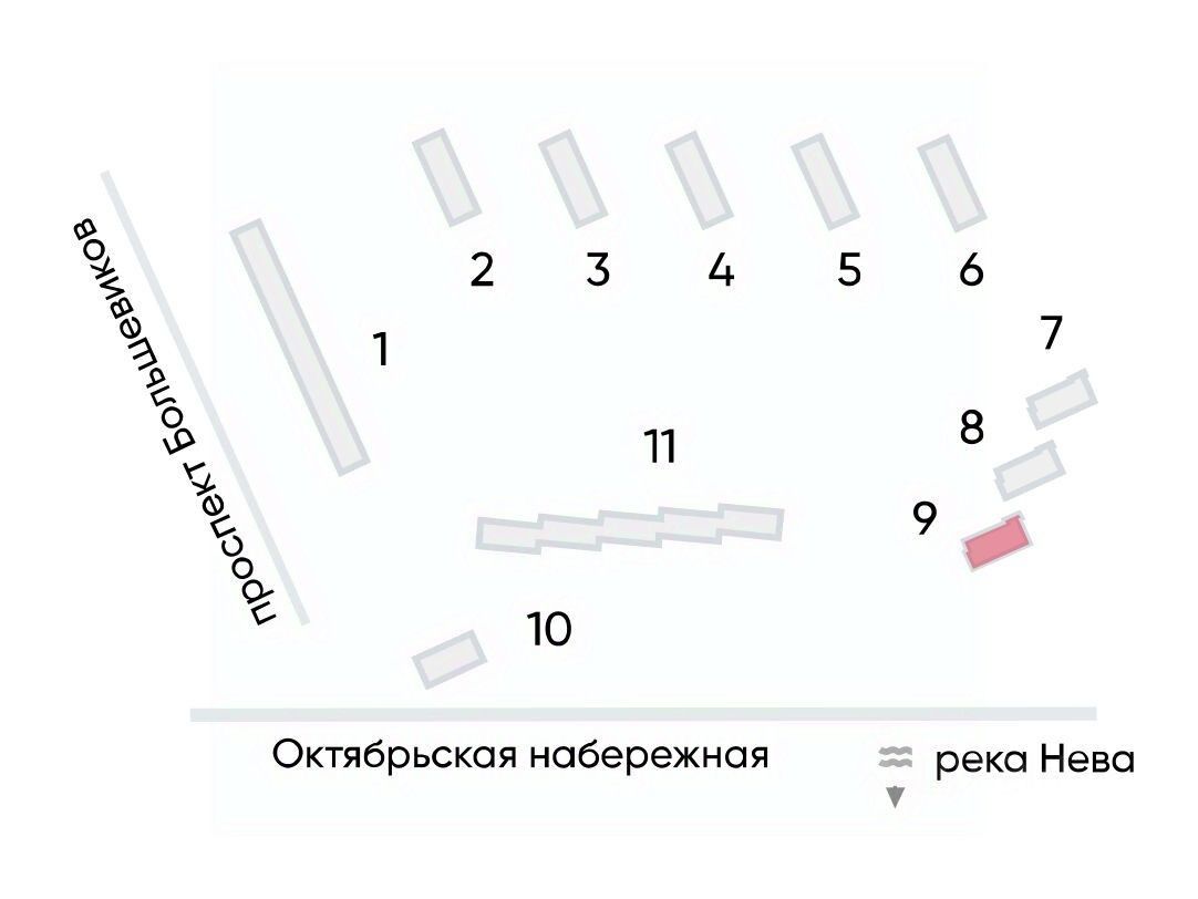 "Октябрьская набережная" — крупный жилой комплекс комфорт-класса из 11 корпусов. Возводится поэтапно: часть домов уже заселены. ЖК расположен вдоль берега Невы, вблизи Большого Обуховского моста и развязки КАД. На территории комплекса школа и детский сад.