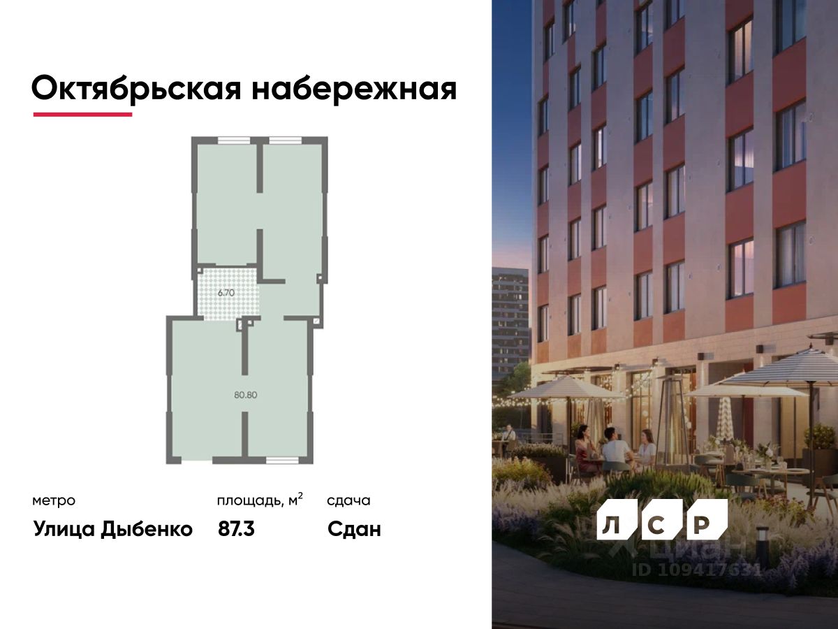 Продается помещение свободного назначения 87.30 кв. м в жилом комплексе комфорт-класса "Октябрьская набережная" в Невском районе.
